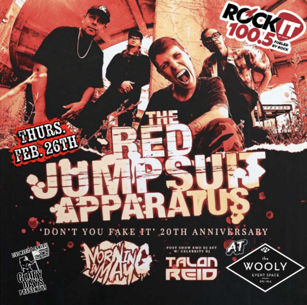 Glory Days Presents The Red Jumpsuit Apparatus - live in Gainesville, Thursday, February 26th at The Wooley with special guest Morning in May!